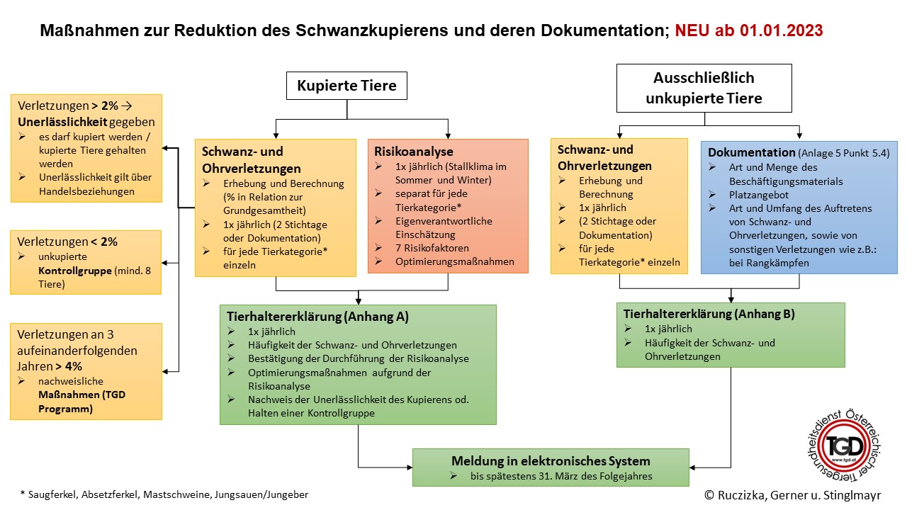Mit 01.01.2023 traten einige Änderungen der 1. Tierhaltungsverordnung (1.THVO) in Kraft. Die umfangreichsten und wohl bedeutendsten Änderungen betreffen den Punkt 2.11. der Anlage 5, die „Maßnahmen zur Reduktion des Schwanzkupierens und deren Dokumentation“.